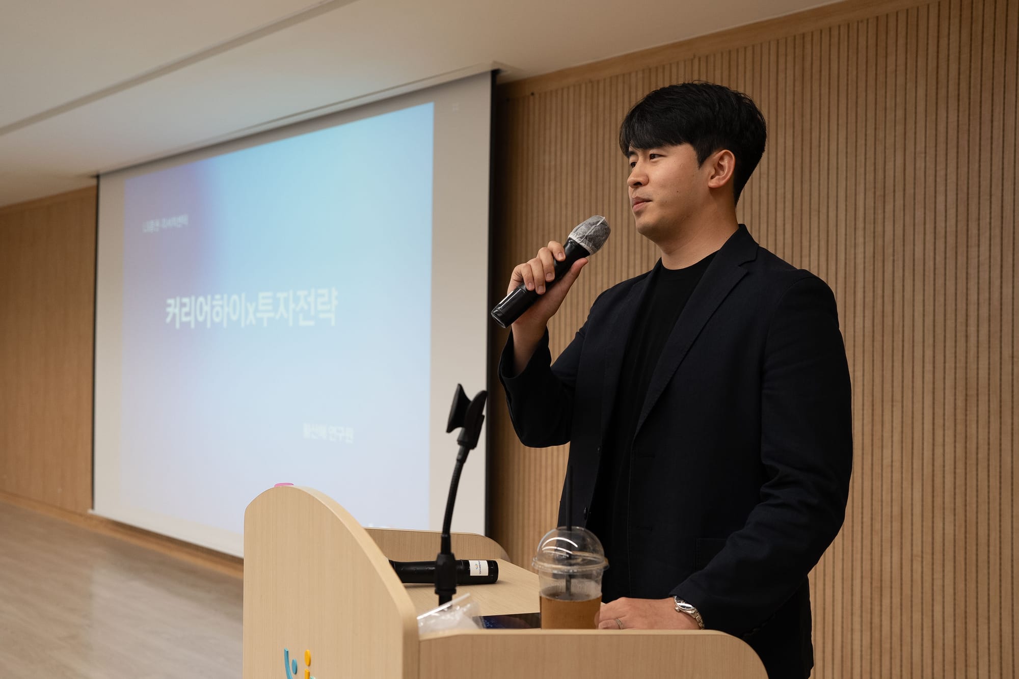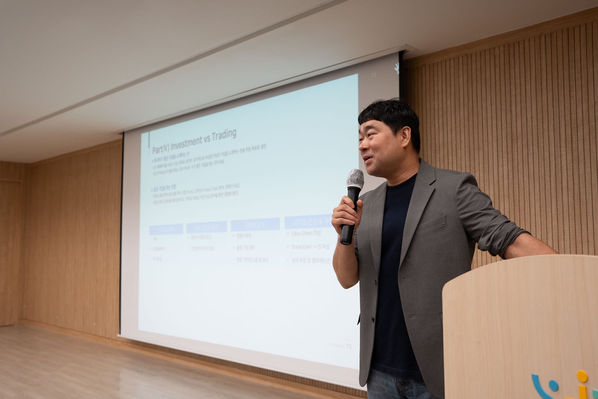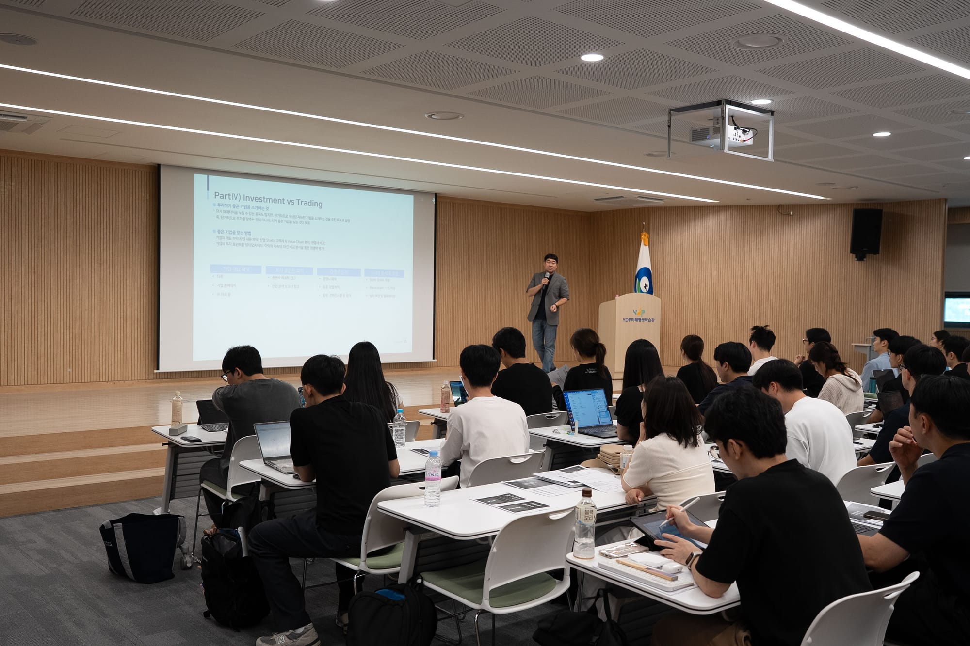 이론이 아닌 실전에서 통하는 시황 분석 방법론을 직접 경험하는 시간이었습니다. 특히 세션이 끝난 뒤에도 질의응답을 위해 자리에 남아 학생들과 개별적인 문답을 진행했습니다. 이러한 황산해 애널리스트의 열정은 참가자들에게 깊은 감동을 주었습니다.