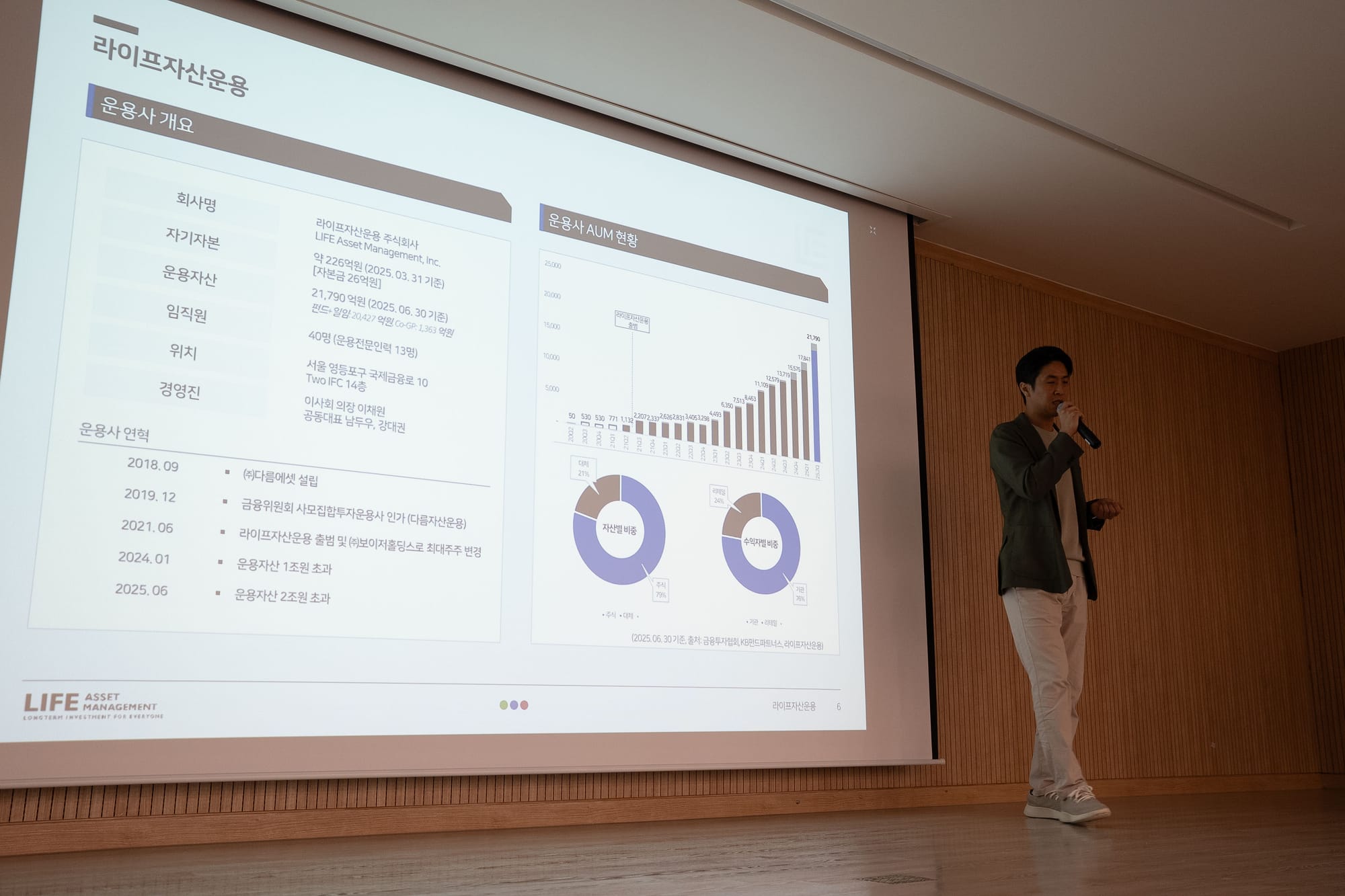 라이프자산운용의 비전과 목적, 그리고 상무 본인이 수행하는 업무를 구체적으로 설명하며 시작된 이 세션은 참가자들에게 강한 인상을 남겼습니다.