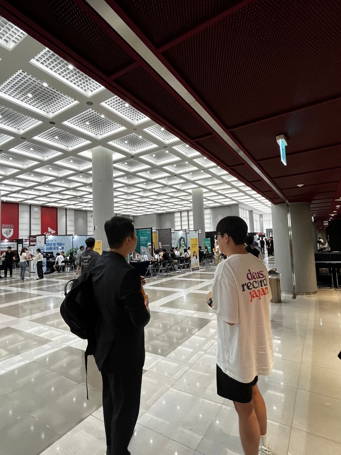 특강에 앞서 채용 박람회를 둘러보던 중, 한 학생이 철오 대표를 알아보고 질문을 던졌습니다.