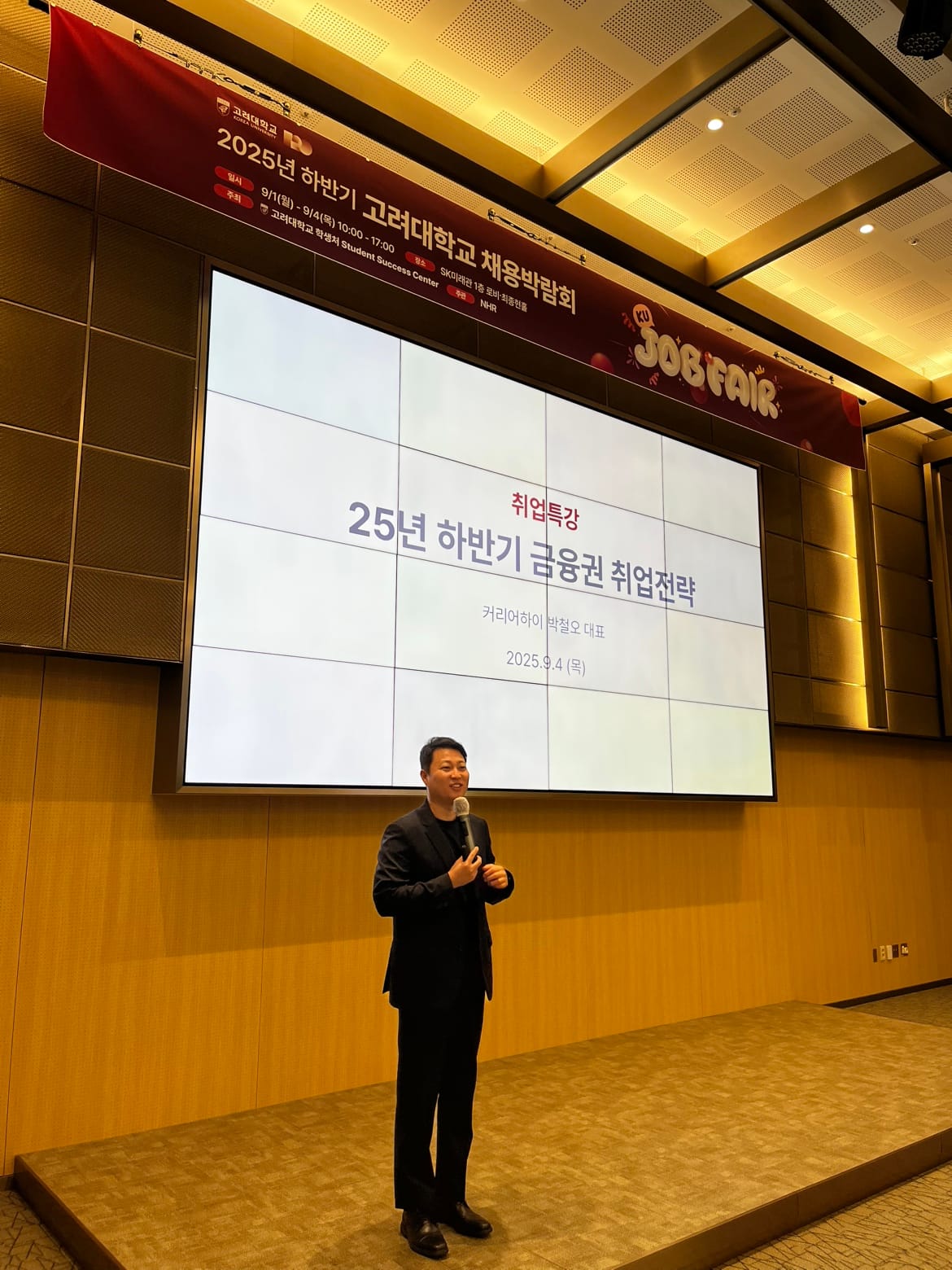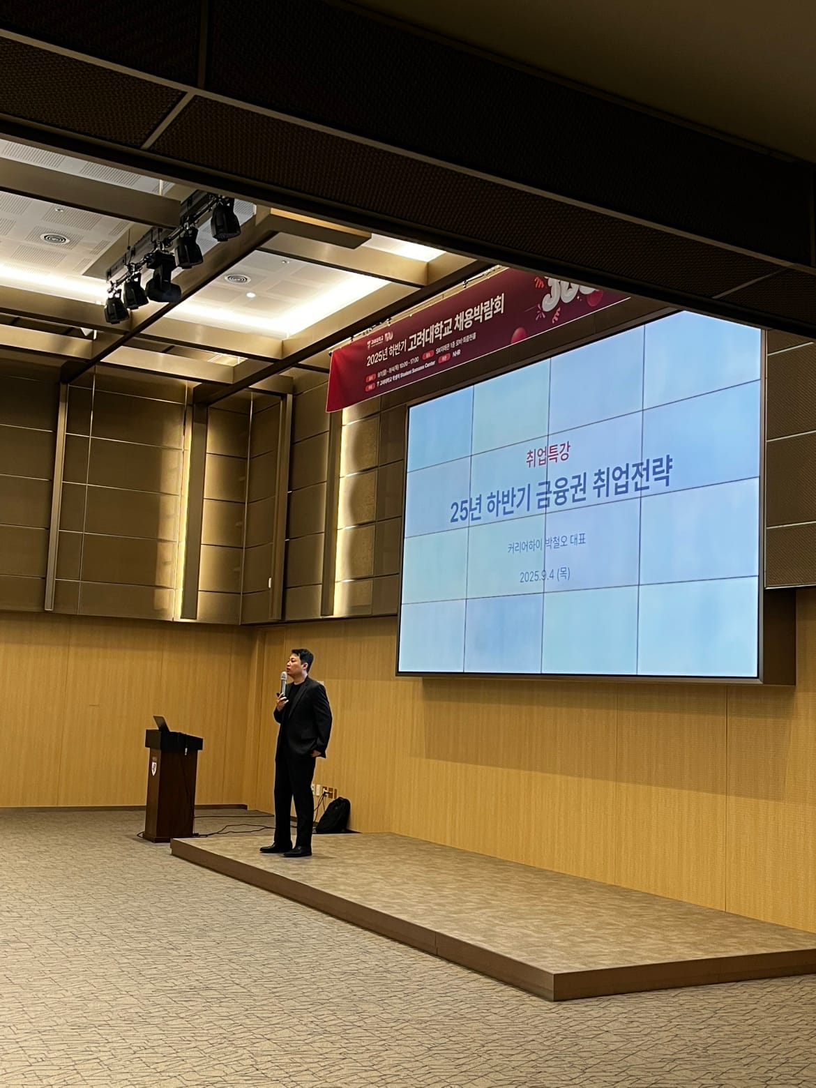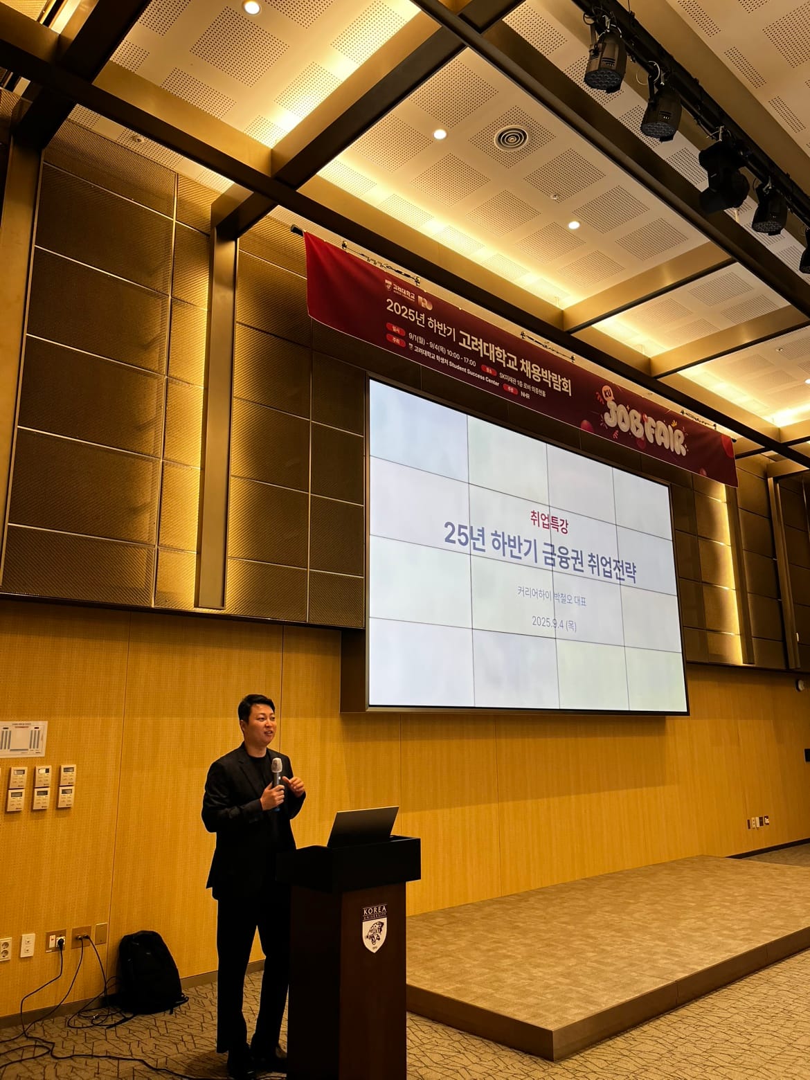 고려대학교 취업박람회에서, 하반기 대비 금융권 취업 특강을 진행했습니다.