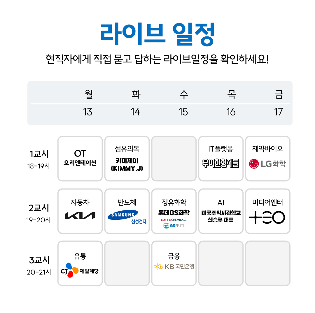 "현직자 라이브 일정" 실시간 소통의 기회