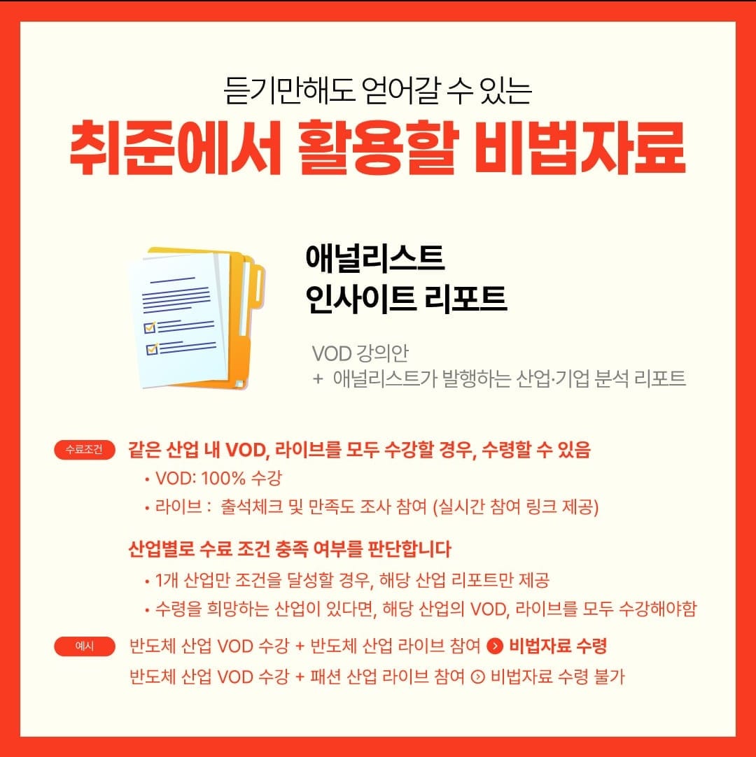 애널리스트 인사이트 리포트 제공 각 산업별로 전문 애널리스트가 작성한 심화 분석 자료를 제공합니다. 자기소개서 작성이나 면접 준비에 직접 활용할 수 있는 실전 자료입니다.