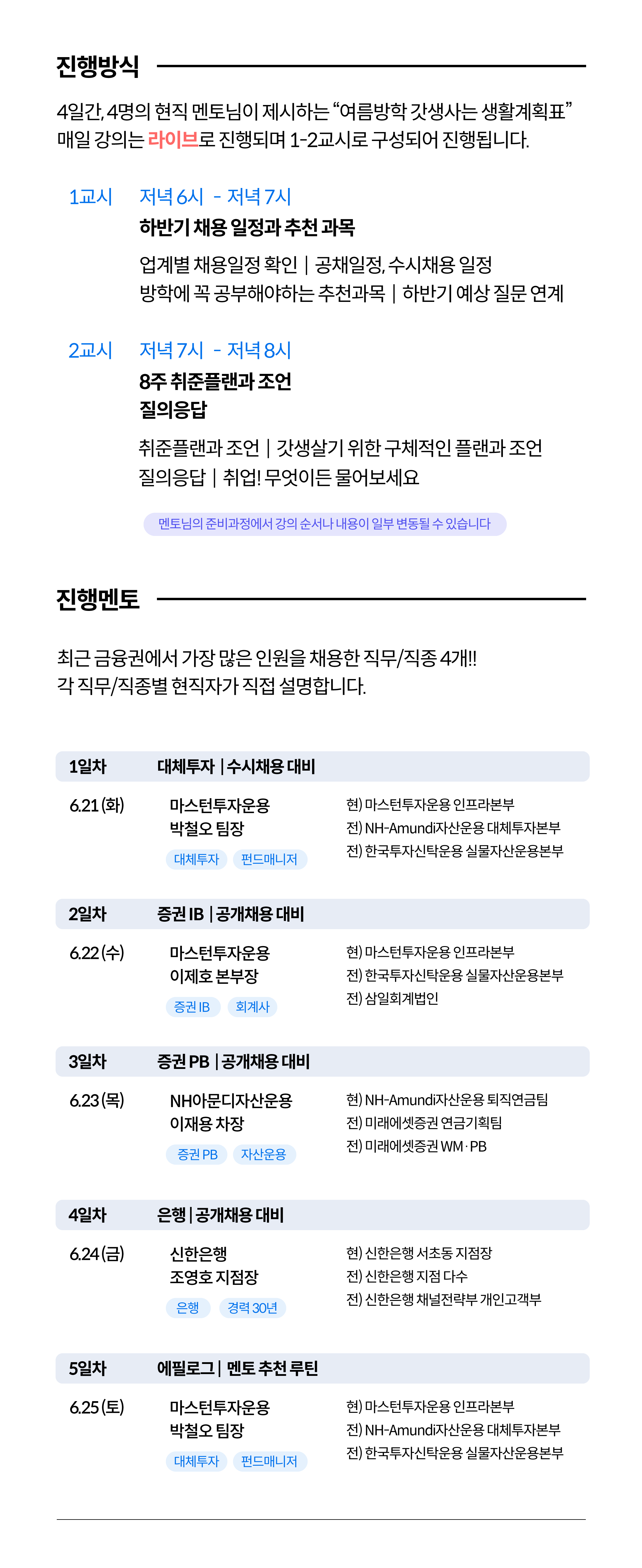이번 여름방학 특강에서 만날 수 있는 멘토진은 그야말로 금융권의 핵심을 아우르는 올스타팀입니다.