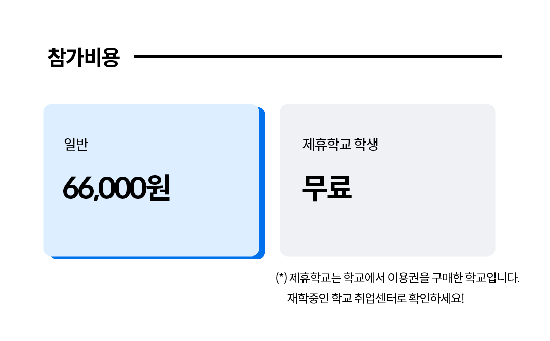 통상 66,000원 상당의 프리미엄 면접 특강을 제휴 대학교 학생들에게는 완전 무료로 제공합니다. 3일간 총 6시간에 걸친 집중 특강이죠.