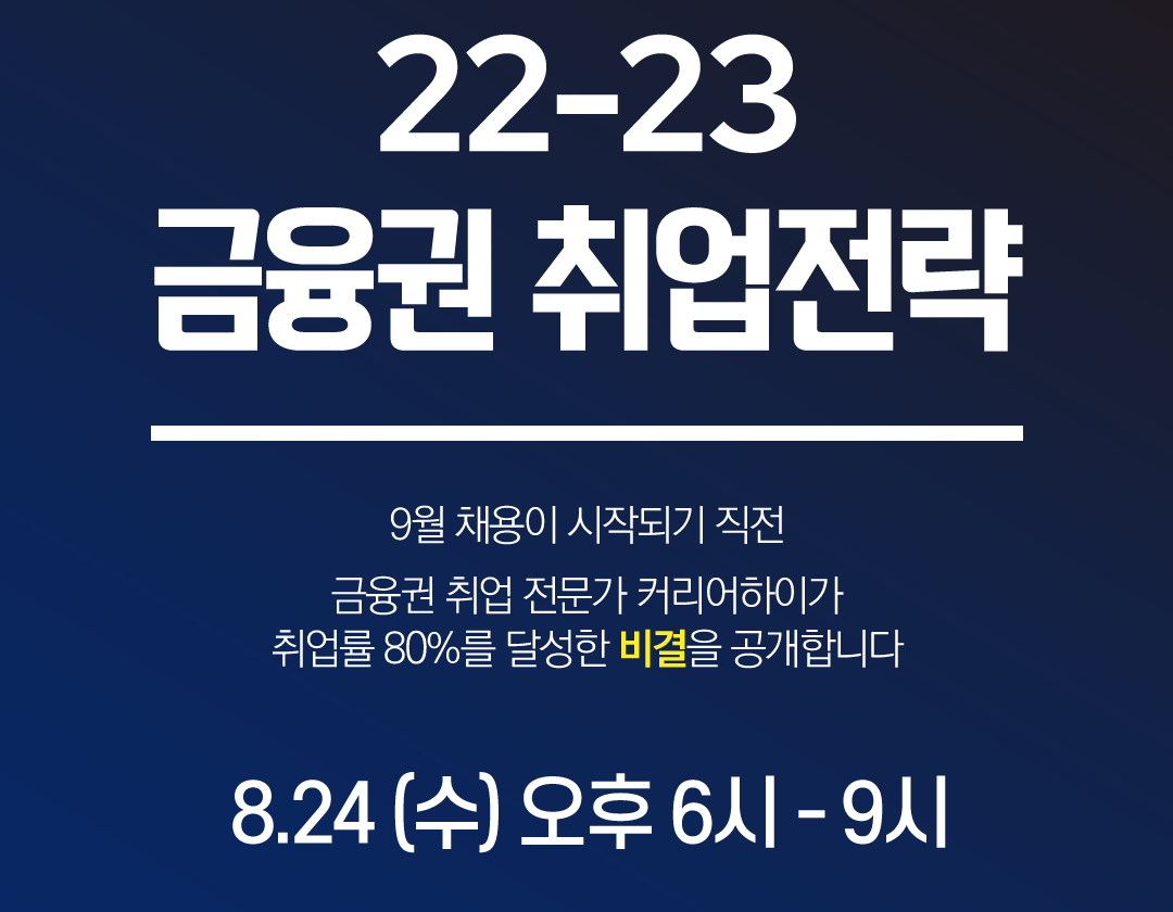 단순한 이론 강의가 아닙니다. 9월 채용이 시작되기 직전, 금융권 취업 전문가 커리어하이가 취업률 80%를 달성한 비결을 공개하는 특별한 시간입니다.