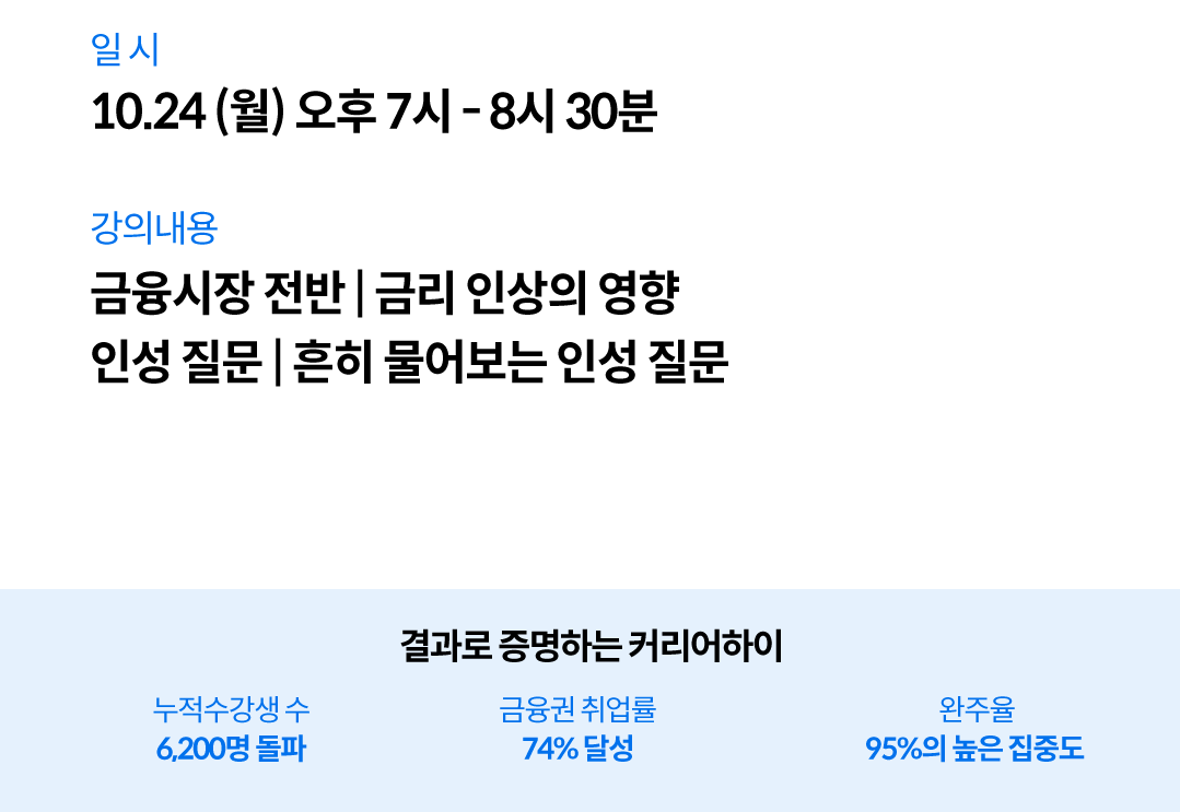 이번 특강은 이론적인 면접 팁이 아닌, 실제 현장에서 검증된 구체적인 답변 전략을 제시합니다. 금융권 면접에서 정말로 중요한 것이 무엇인지, 그리고 나의 경험과 생각을 어떻게 논리적으로 전달할 수 있는지에 대한 명확한 방향을 제시합니다.