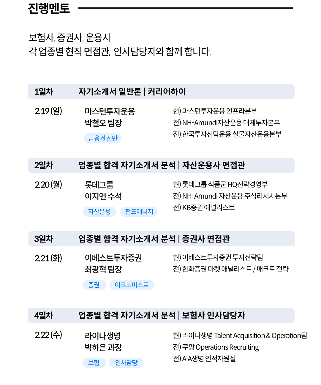 이번 특강의 가장 큰 차별점은 실제 채용 과정에 참여하는 현직자들의 직접적인 조언입니다.
