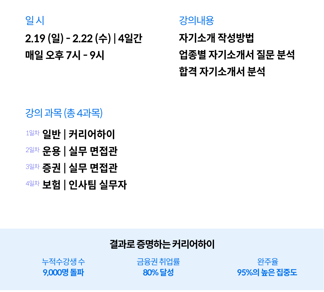 2월 19일(일): 입반 | 커리어하이 마스턴투자운용 박철오 팀장이 금융권 진입을 위한 자기소개서의 핵심을 알려드립니다.