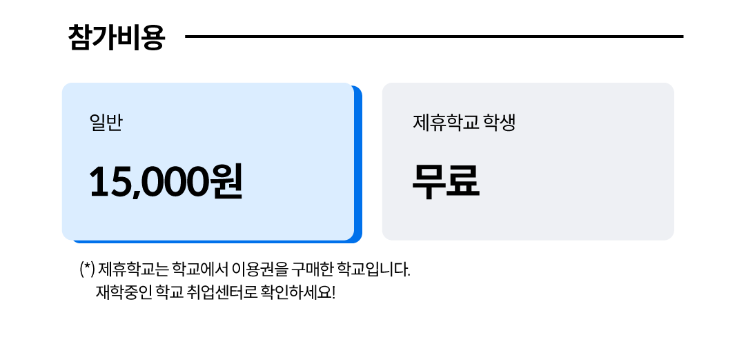 통상 15,000원 상당의 특강을 제휴 대학교 학생들에게는 완전 무료로 제공합니다. 3시간에 걸친 상반기 채용 완전 분석 프로그램이죠.