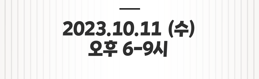 일정: 10월 11일(수) 시간: 오후 6시-9시 (3시간) 방식: 온라인 실시간 강의