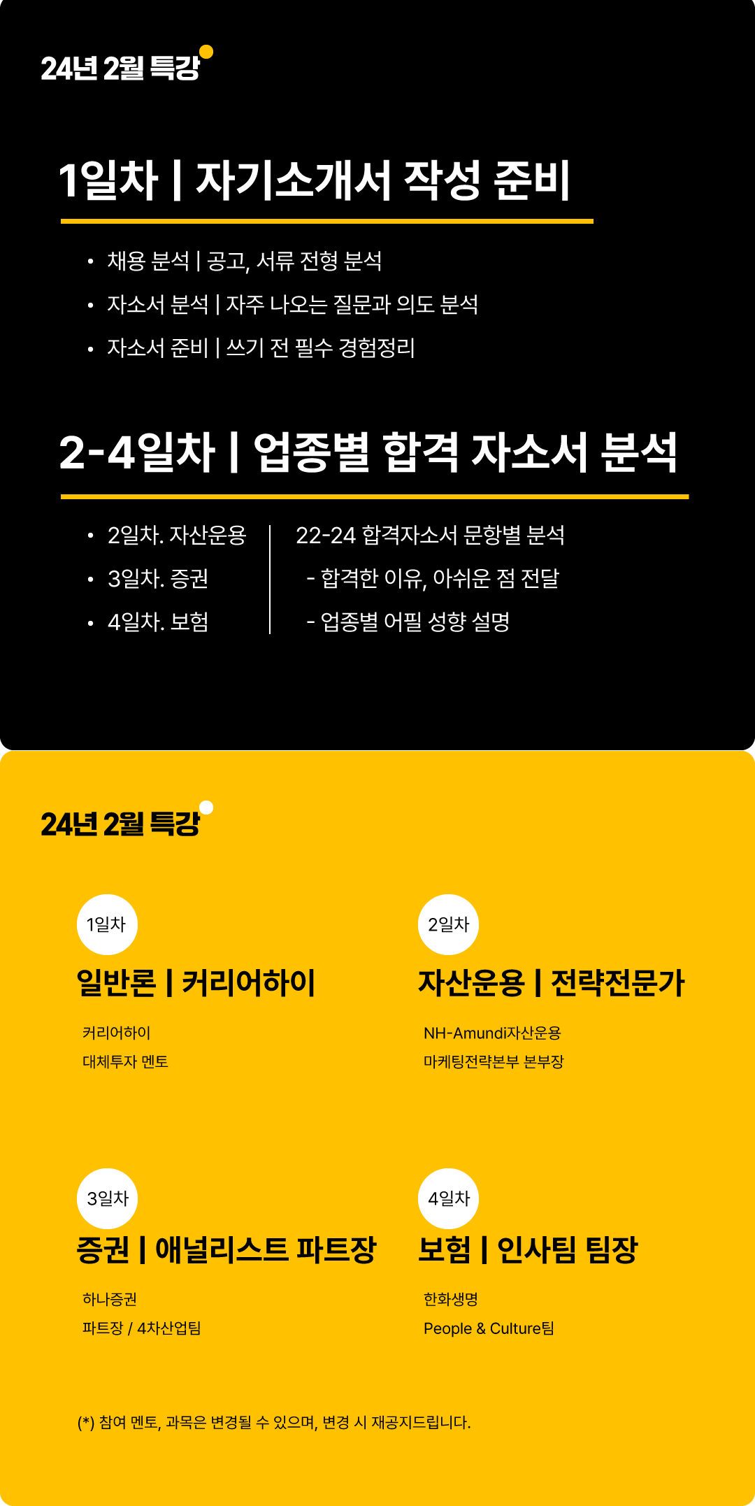 상반기 서류 마감이 다가오는 이 시점, 더 이상 시간을 낭비할 여유는 없습니다. 4일간 집중적으로 진행되는 이 프로그램을 통해 합격 가능성을 확실히 높여보세요.
