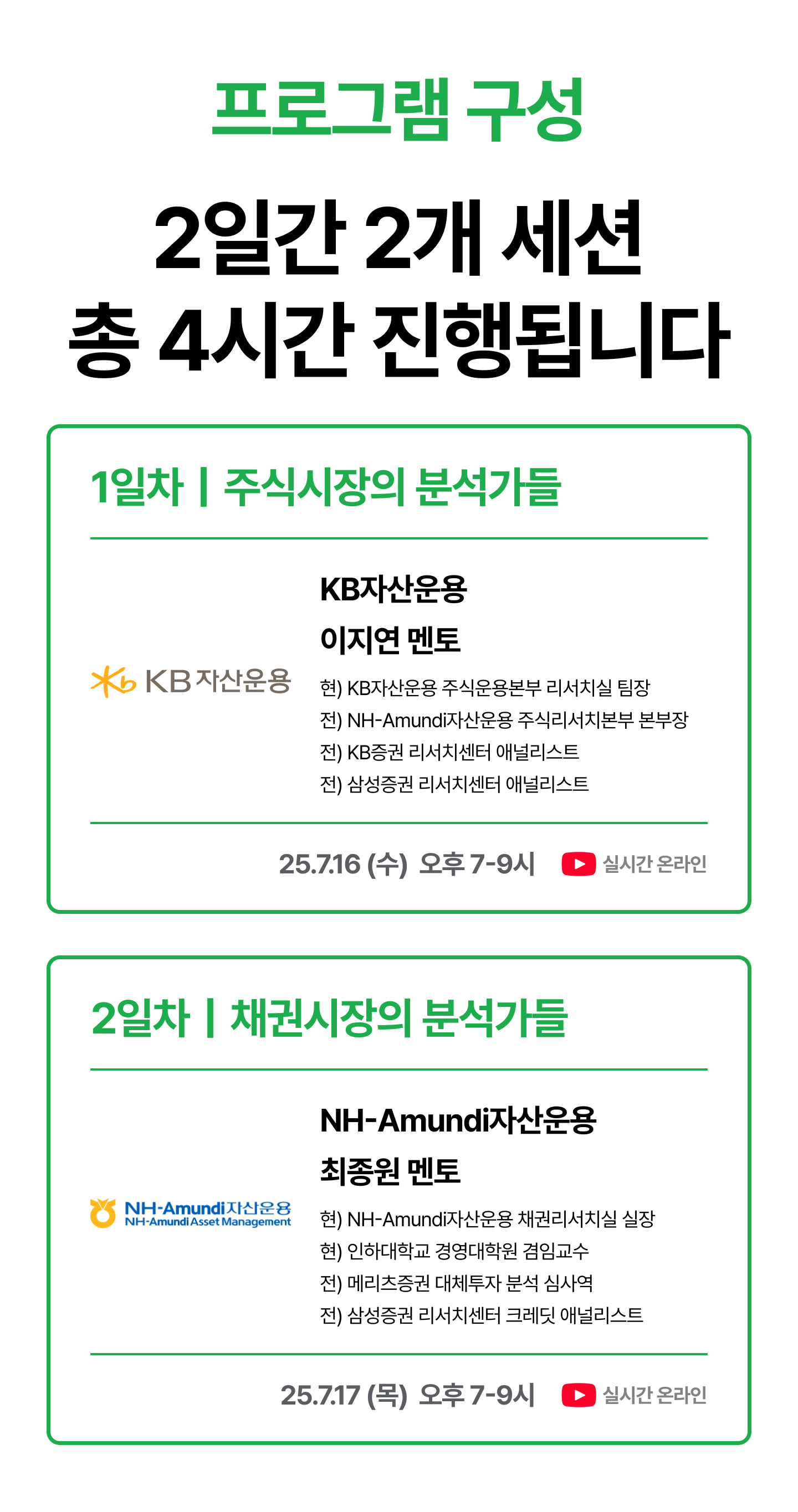 KB자산운용에서 NH-Amundi자산운용까지, 주식시장 분석 업무의 실제와 KB증권 리서치센터, 삼성증권 리서치센터에서의 경험을 바탕으로 한 생생한 인사이트를 전해드립니다.