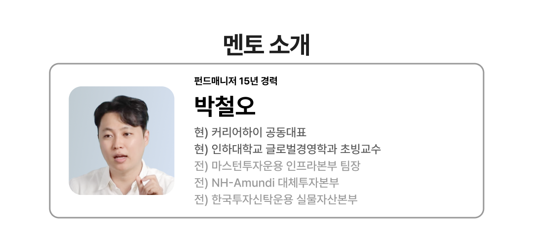 - 前) 마스턴투자운용 인프라투자본부 팀장