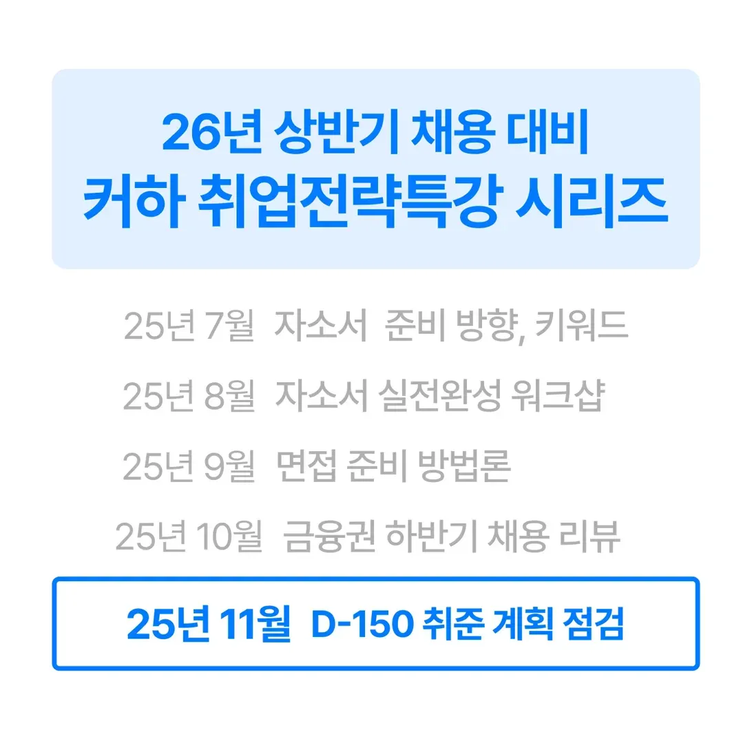 그리고 이제, 25년 11월 'D-150 취준 계획 점검'을 통해 여러분의 26년도 계획을 점검해드립니다 !