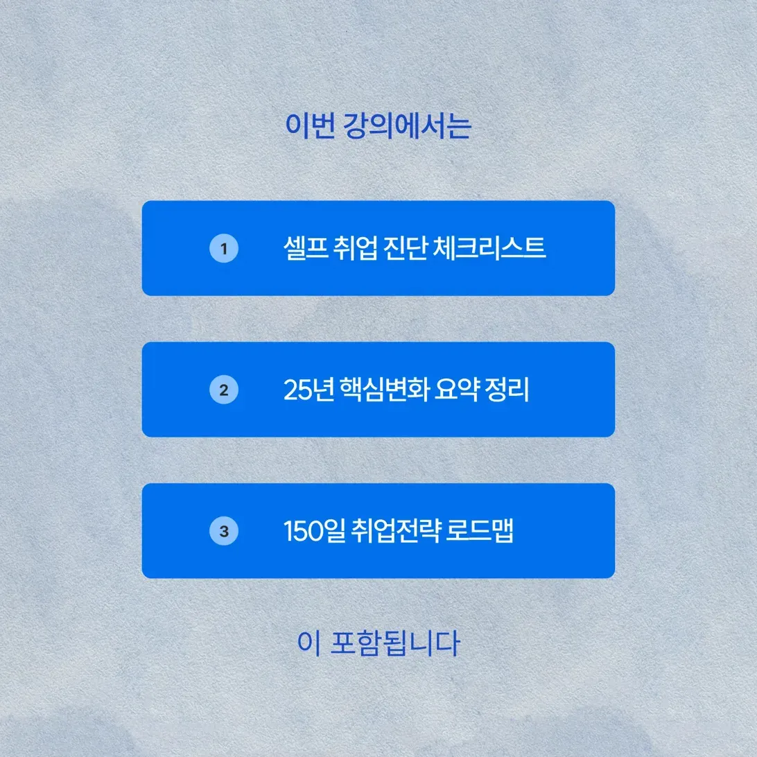 “내가 하고 있는게 맞나?” 라는 궁금증으로 시간을 허비하지 마세요. 25년도의 변화과정을 알고 스스로 점검해야 할 부분을 제시받으며 26년 상반기 채용에 도전하시기 바랍니다.