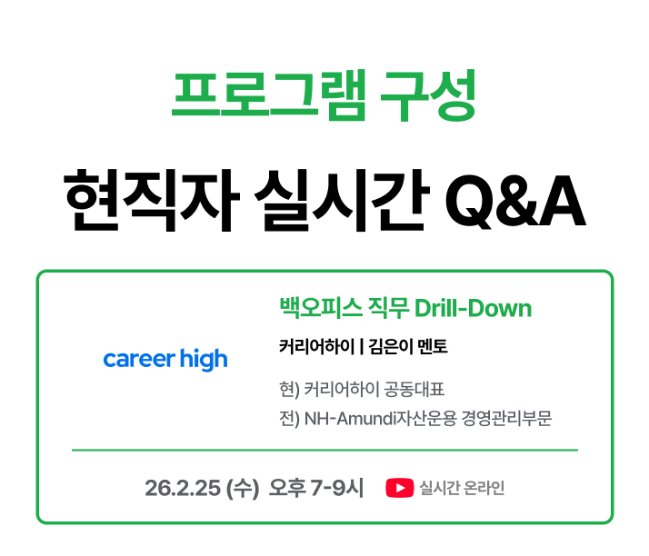 나만의 진로 고민, 취업 준비 질문을 라이브로 직접 물어볼 수 있는 시간입니다.