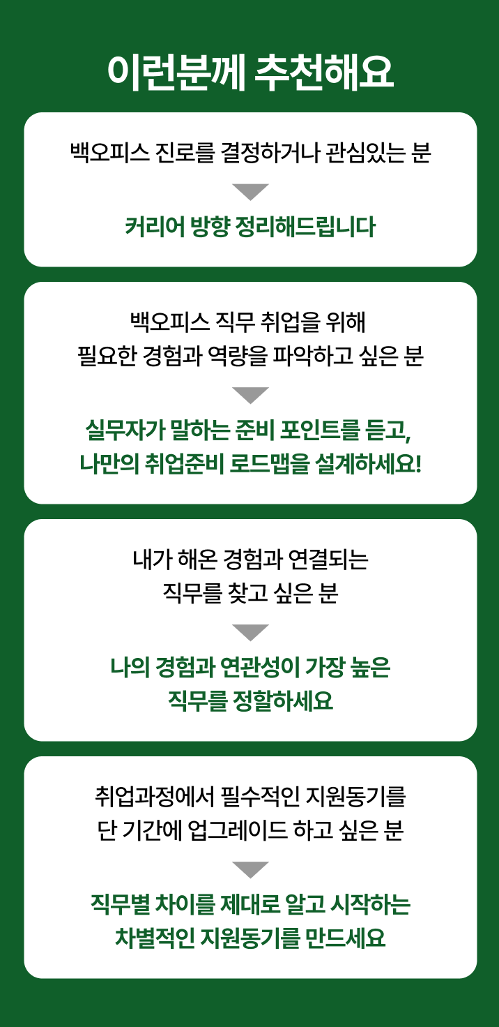 백오피스 직무는 생각 중이지만 무엇부터 알아야 할지 막막한 분, 관심 직무의 A부터 Z까지 제대로 이해하고 싶은 분, 직무에 대한 이해를 바탕으로 지원동기를 직접 작성하고 싶은 분들을 위한 자리입니다.